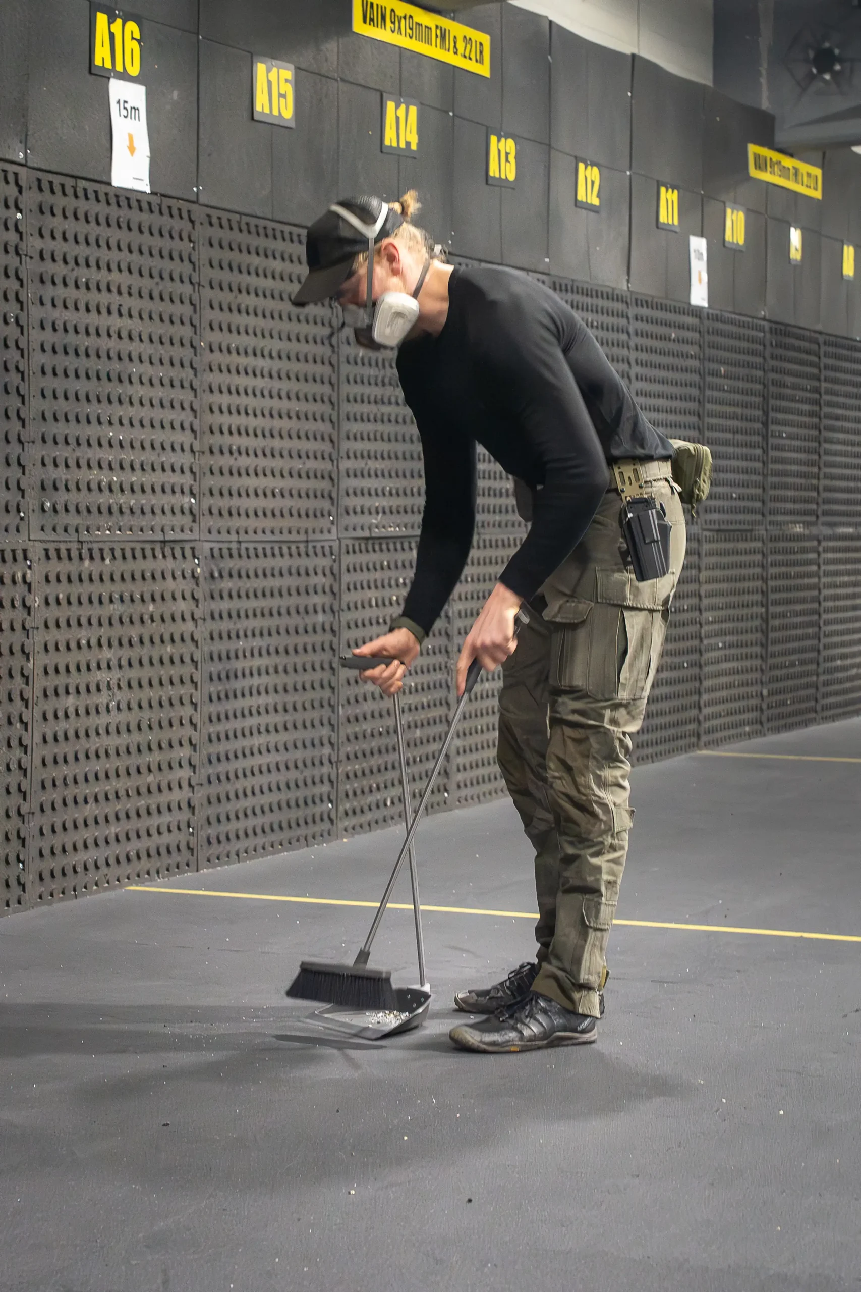 Toiseksi kannattaa hankkia ratakäyttöön tarkoitetut hanskat, jotka puetaan päälle aina hylsyjä poimiessa ja rataa siivotessa. Käsien pesu kahdesti saippualla on suositeltavaa aina ampumisen jälkeen. Vielä kun pidättäytyy kasvojen koskemisesta radalla, välttyy suun kautta elimistöön päätyvältä lyijyltä.